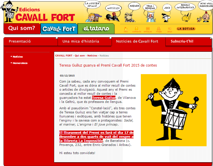 Teresa Guiluz, coautora de l'espectacle La Llista:6 autors cerquen lectors, ha guanyat el premi Cavall Fort al millor recull de contes. Moltes felicitats!